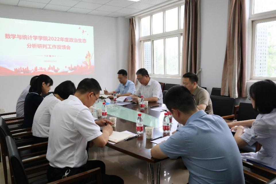 6月20日上午,数学与统计学学院2022年度政治生态分析研判工作反馈会在205会议室开展。校党委常委、纪委书记、监察专员檀坤华,校纪委、监察专员办公室副主任石光红,校纪委、监察专员办公室科长邓超,海角天涯社区网页入口登录领导班子成员及党委委员参加会议。
