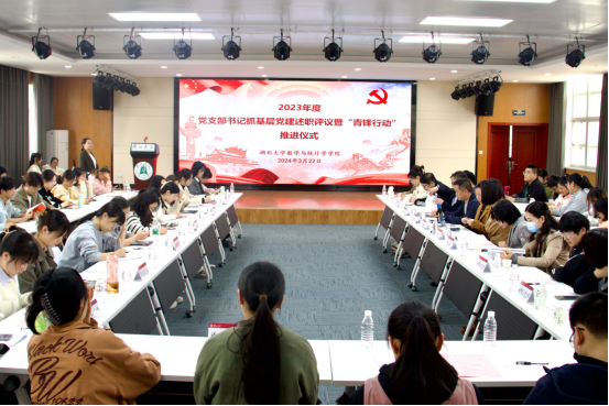 3月22日下午,数学与统计学学院在学院八楼报告厅隆重召开了2023年度党支部书记抓基层党建述职评议暨“青锋行动”推进仪式。学校研究生工作部部长于婧,学生工作部副部长袁新,学院党委书记周霞,以及学院领导班子成员、党委委员、各支部书记、青锋宣讲团成员和各班级学生代表参加会议。