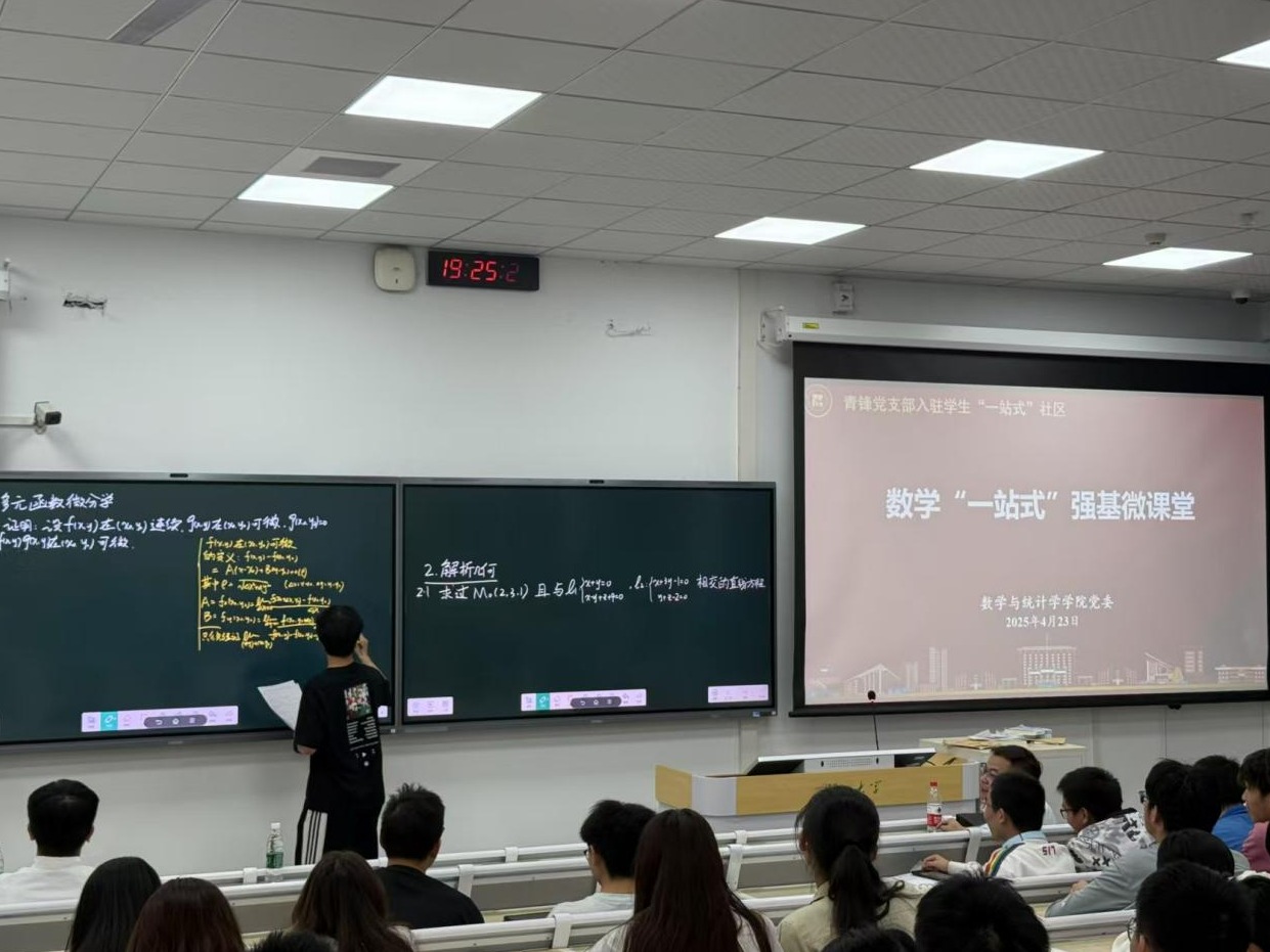 长江日报大武汉客户端4月25日讯(记者陈晓彤)近日,在湖北大学,一堂数学微课吸引240多名师生,大阶梯教室里座无虚席。这不是学校的常规课程,而是湖大数学与统计学学院青锋党支部的党员志愿者们,为学生提供数学专项辅导。