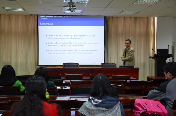 在本次报告中,郑大彬简单讲解了如何通过构造几类具有三个或四个非零点的循环码,利用有限域上二次型理论以及指数和理论确定所构造循环码的重量分布。这种做法不仅推广了已有的相关结论,而且丰富了纠错码理论,使之具有广泛的应用前景。