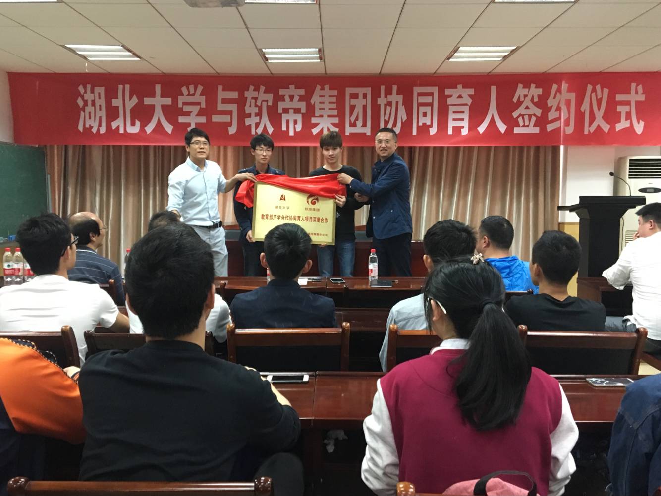 5月11日上午,湖北大学与软帝集团协同育人签约仪式在学院201报告厅举行。软帝集团董事长李杰先生、集团校长孙海南先生、湖北大学教务处副处长李其锋、海角天涯社区网页入口登录领导及师生代表出席了本次签约仪式,仪式由软帝集团杨莹女士主持。