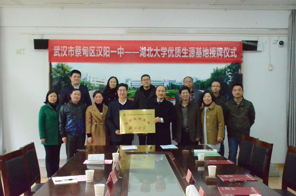 11月8日下午,学院一行前往武汉市蔡甸区汉阳一中,颁授“湖北大学优质生源基地”匾牌,副校长钱建国出席授牌仪式,院长曾祥勇、院党委副书记陆伟、招就处、保密办领导参加了此次工作,并开展招生宣传工作。