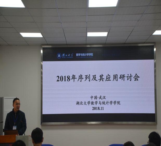 11月24-25日,由湖北大学数学与统计学学院、应用数学湖北省重点实验室联合主办的2018序列及其应用研讨会在我校召开。