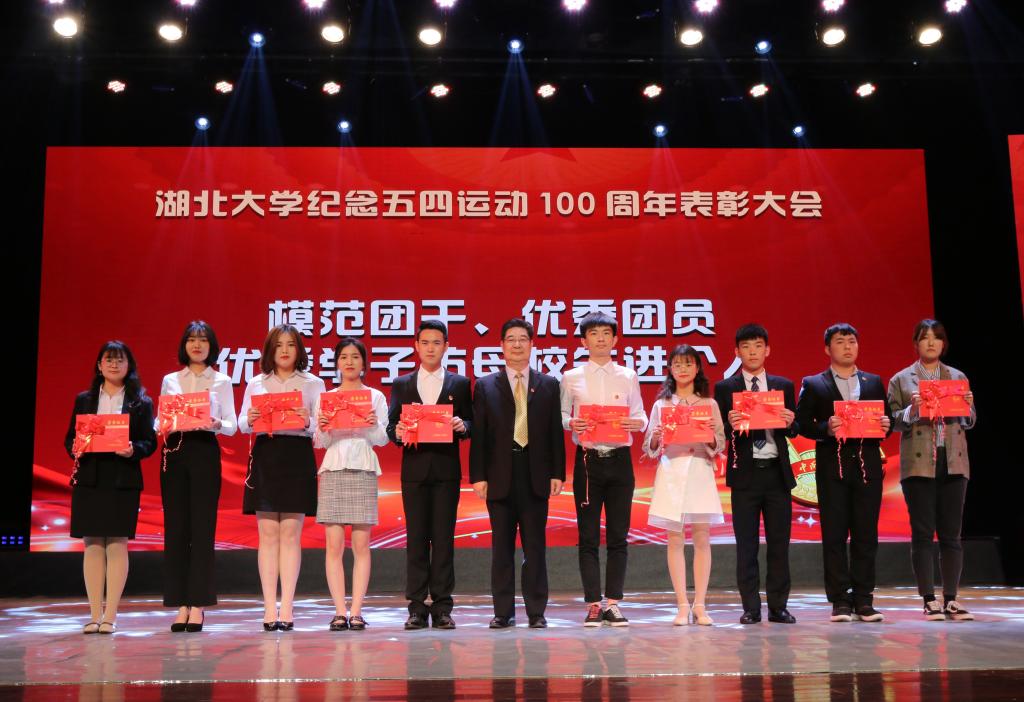 “我们是五月的花海,用青春拥抱时代;我们是初升的太阳,用生命点燃未来……”4月30日下午,湖北大学纪念五四运动100周年表彰大会在小礼堂隆重举行。校领导谢红星、檀坤华、王世敏、蒋涛、侯勇、钱建国出席大会并颁奖,学校有关职能部门负责人,各学院党委副书记、团委书记及师生代表近千人参加大会。会上,我院多个集体和个人荣获表彰。