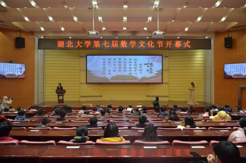 2020年11月25日下午,湖北大学第七届数学文化节在会议中心思睿厅开幕,此次数学文化节的主题是“叹朱楼翠阁之精妙赏虚实曲直之绝伦”。校党委宣传部、研究生工作部、学生工作部、团委等职能部门负责人,海角天涯社区网页入口登录全体领导及部分师生代表参加了开幕式。
