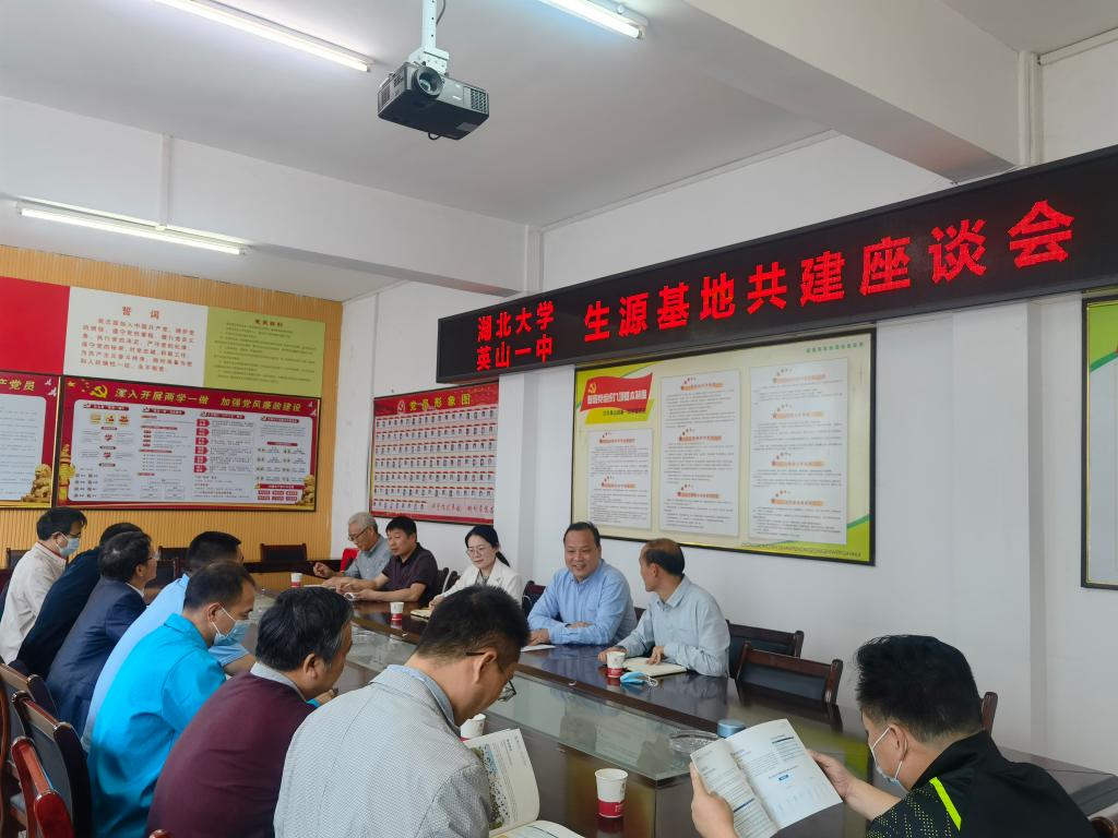交流座谈会上,方爱武首先对湖北大学一行来校开展招生宣传活动表示热烈欢迎。接着他简要介绍了英山一中近些年的发展情况。付应雄就湖北大学的基本情况、办学条件及招生政策进行了介绍,并详细介绍了数学与统计学学院的专业设置、师资状况、人才培养等方面的情况。