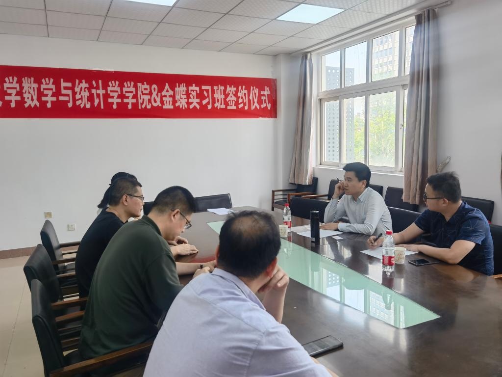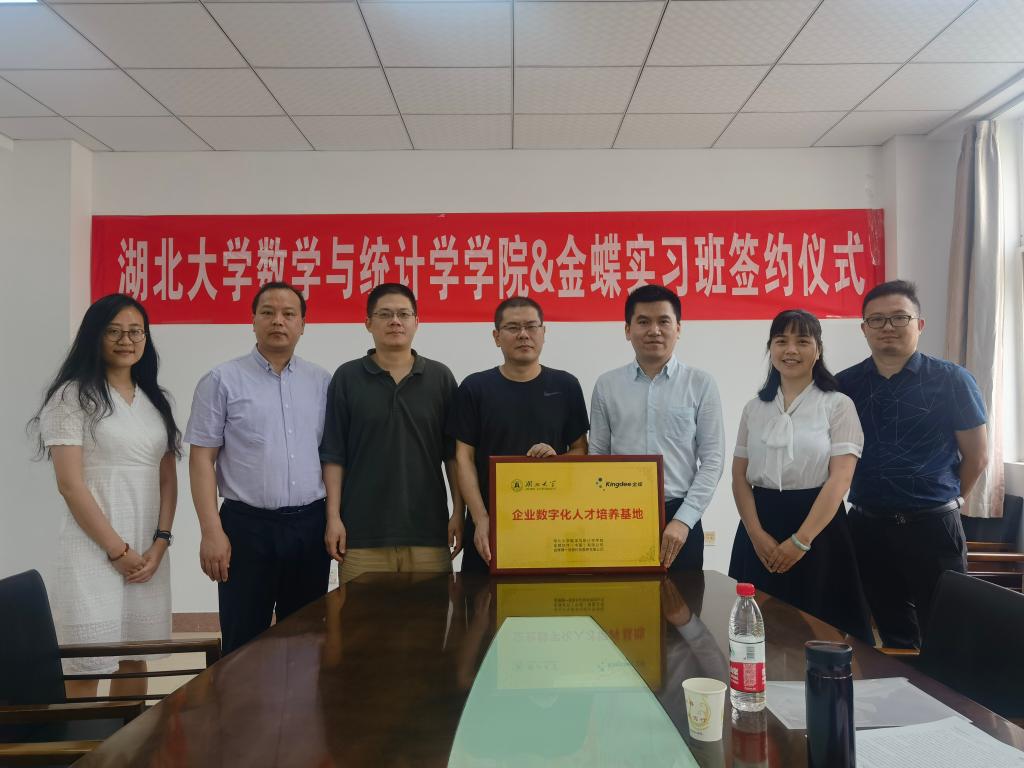 为充分发挥校企双方优势,推动产教融合,为学生实习、实训、实践、就业提供更大空间,2021年6月2日上午,湖北大学数学与统计学学院与金蝶集团联合建立“湖北大学数学与统计学学院—金蝶企业数字化人才实习班”,并举行签约仪式。金蝶精一信息科技服务有限公司副总经理、顾问学院院长张喆敏,湖北省区客户经理陈震及学院领导班子成员共同出席会议。