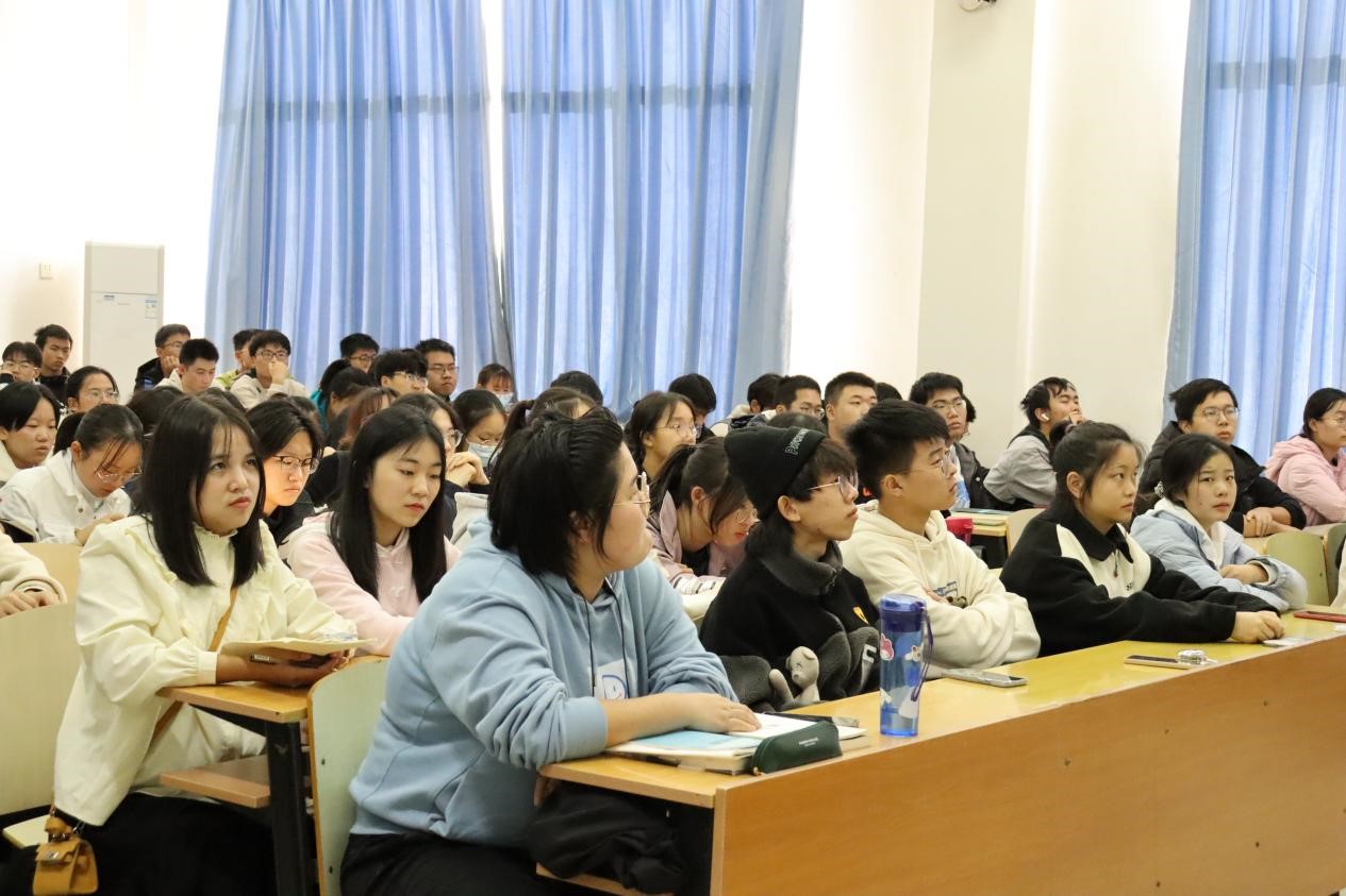曾祥勇教授首先向学生们介绍了学院基本情况,他指出,湖北大学数学与统计学院师资力量雄厚,学科实力强劲,具备良好的人才培养条件。随后,他建议学生们通过参加数学相关的学科竞赛,培养学科兴趣,提高专业能力。他强调:“数学学习首先要讲究理论功底,其次也要掌握先进的信息技术。在学习中将理论与实践相结合,才能提高综合素质,提高就业竞争力。”