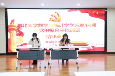 11月24日中午,数学与统计学学院第14期党的基本理论知识培训班结业典礼在学院八楼报告厅举行。院党委副书记何肖、院党校班主任吴玉莲及53名入党积极分子参加结业典礼。结业典礼由院党校班主任吴玉莲主持。