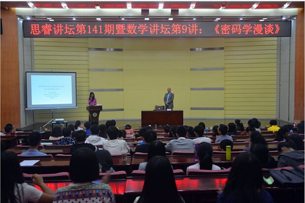 Tor Helleseth教授此次学术报告是涉及密码学方面较为专业的报告。尽管是全英文专题讲座报告,但现场座无虚席,气氛热烈。不少学生为一睹大家风范、聆听到学术最前沿的独到见解,纷纷席地而坐。他介绍说密码学是研究编制密码和破译密码的技术科学,以此研究密码变化的客观规律,从而分为两大类。应用于编制密码以保守通信秘密的,称之为编码学,应用于破译密码以获取通信情报的,称之为破译学。随后漫谈其在密码学领域所做的研究,进行深入化的分析讲解报告。“教授的知识很丰富,讲的密码学内容深入简出,在数学领域方面很受用。”2013级应用数学专业的文鑫对教授很是敬佩。
