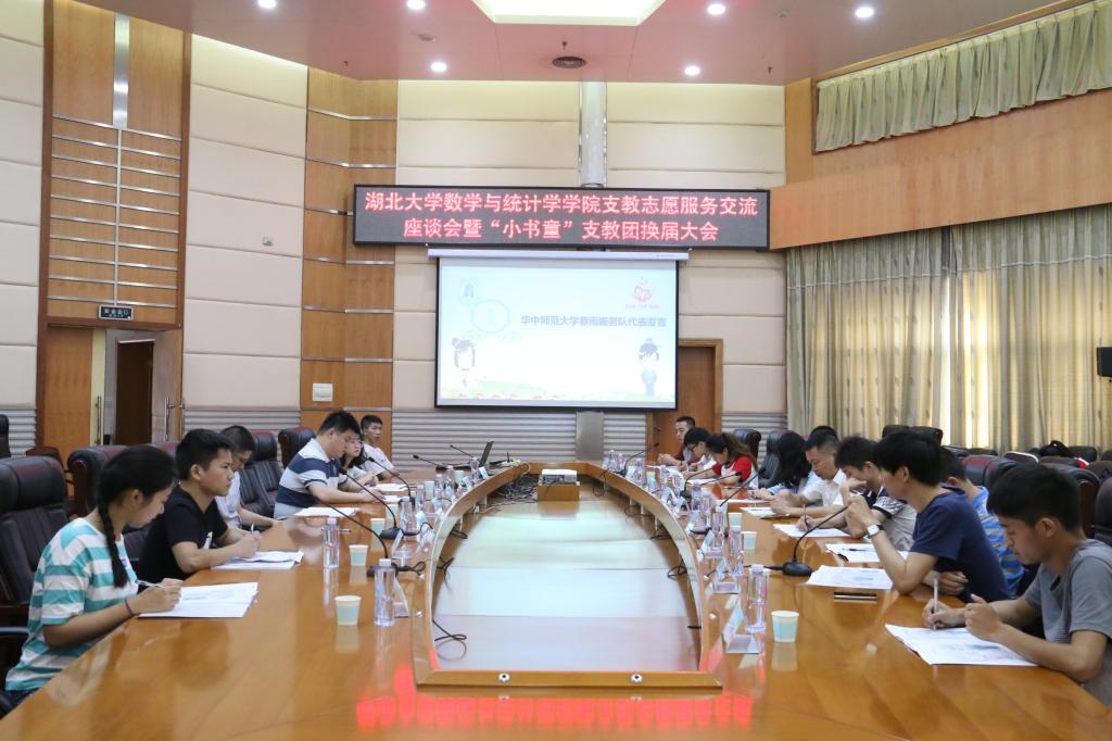 支教志愿服务交流座谈会在上午10:00准时举行。湖北大学研究生支教团、华中师范大学春雨服务队、华中农业大学新长城自强社和湖北大学研究生支教团等服务队代表、湖北大学各学院志愿服务队代表依次上台发言表自己和团队在志愿服务中的心得体会。湖北大学研究生支教团代表桂泽红说:“支教就是用不长的时间,做一辈子难忘的事。”