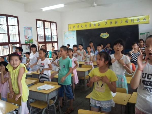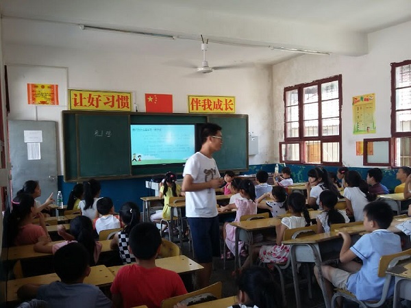 7月15日,志愿者们在支教地点杨芳小学隆重开展了此次“希望家园”的开班仪式。该培训班共接收了50个左右的学生,学生年龄覆盖7岁到14岁。经过周末两天的修整后,18日志愿者们正式开始上课了。