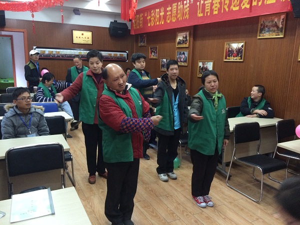 首先学院陆书记和陈老师与阳光家园的吴书记展开了谈话,了解了志愿者们在阳光家园做的常规活动以及对以后活动的规划。随后,党员和志愿者们开展了一次志愿活动,志愿者协会主席胡巧玉教他们一些简单的英语单词,并开展了一些小游戏,现场的气氛逐渐达到了高潮。最后志协副主席吴震盼和阳光家园的残障人士朋友们一起表演了手语舞——感恩的心。