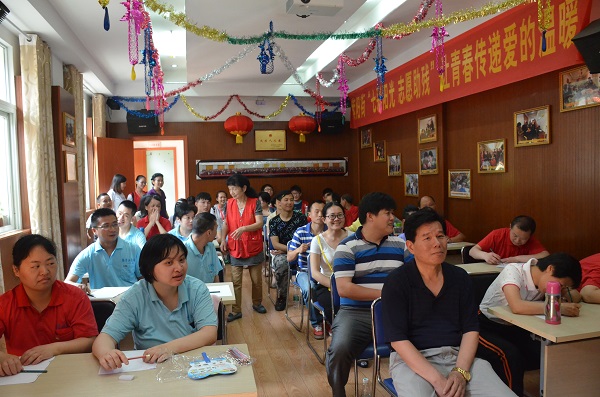 6月7日上午,在海角天涯社区网页入口登录党委书记游春林的带领下,海角天涯社区网页入口登录青年党员教师及部分学生党员一行19人前往武昌区武泰闸紫阳街阳光家园,联合紫阳街社区义工和居民为智障朋友包粽子,共迎端午佳节。