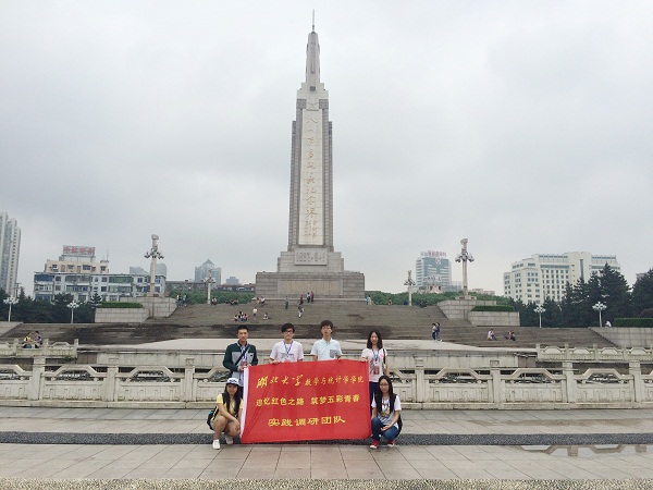 据悉,为纪念抗日战争胜利70周年,自觉弘扬和践行社会主义核心价值观,湖北大学数学与统计学学院开展“追忆红色之路筑梦五彩青春”的主题教育活动。此次活动采取由青年党员教师带队,学生干部组织、青年学生党员实践为形式搭建一个三级复合交流模,采取共同的主题下,划分六个实践团队小组赴湖南省、江苏省、河南省、江西省等各个省份进行累计一个月的考察调研活动。