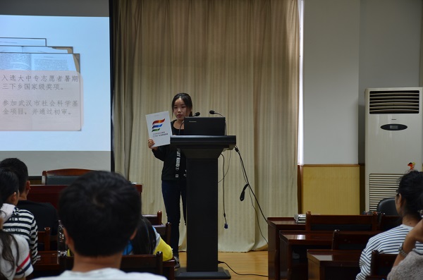5月26日下午,我院暑期社会实践启动仪式暨首期团队培训在院201顺利展开。本次培训的主讲人是来自于2013级汉语言文学专业、曾获得暑期社会实践国家级优秀团队的负责人许烛景,院团委书记周杰参会。