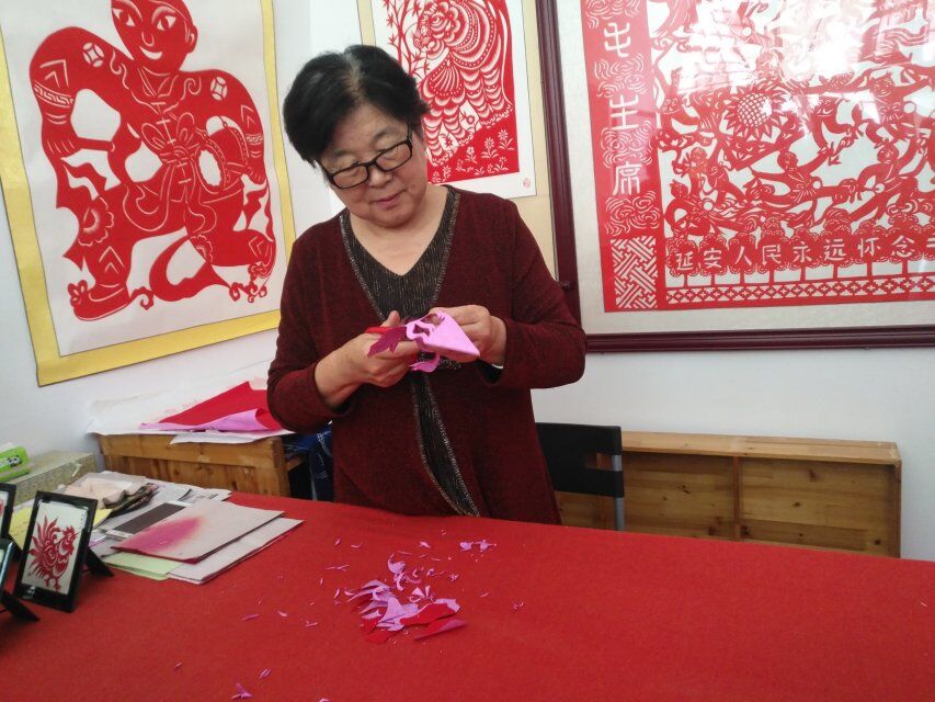 图为侯雪昭老师正在剪纸 湖北大学侯文慧摄