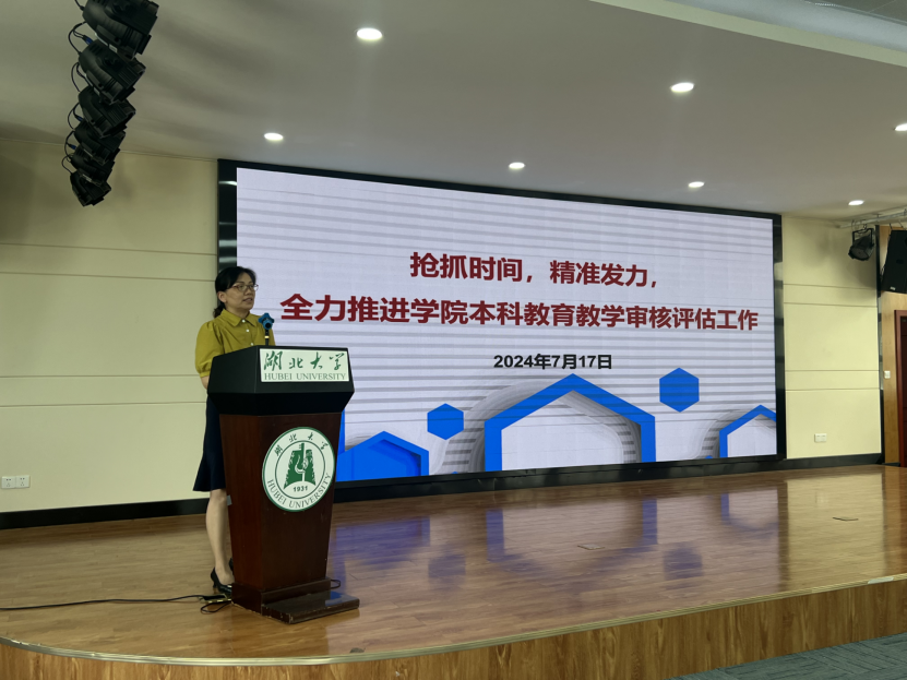 7月17日下午,学院在八楼会议室召开了本科教育教学审核评估工作动员大会,邀请学校本科生院副院长吴明群围绕评估工作开展了专题培训。学院领导班子成员、全体教职工参会。会议由学院党委书记周霞主持。